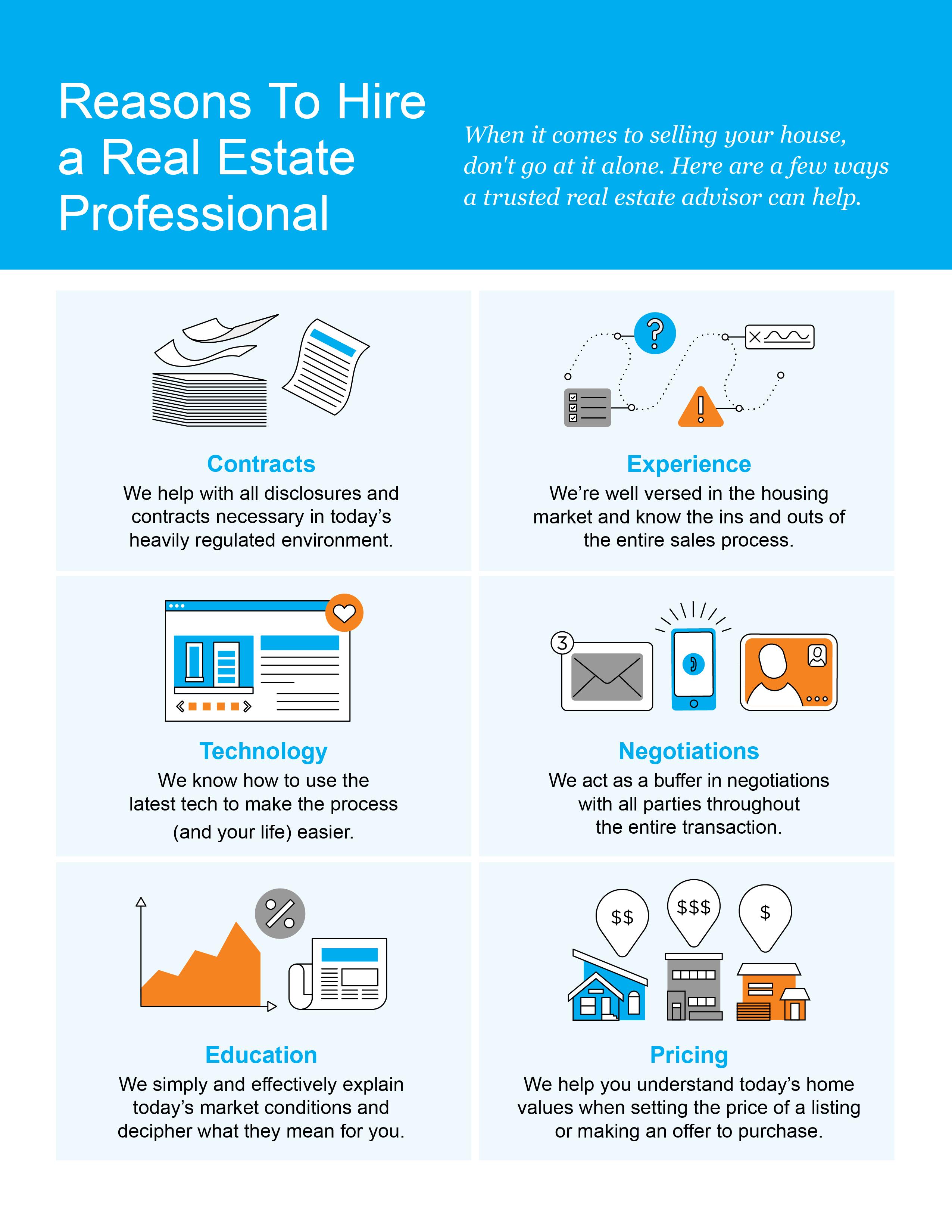 “Selling a home typically requires a variety of forms, reports, disclosures, and other legal and financial documents. . . . there’s a lot of jargon involved in a real estate transaction; you want to work with a professional who can speak the language.”