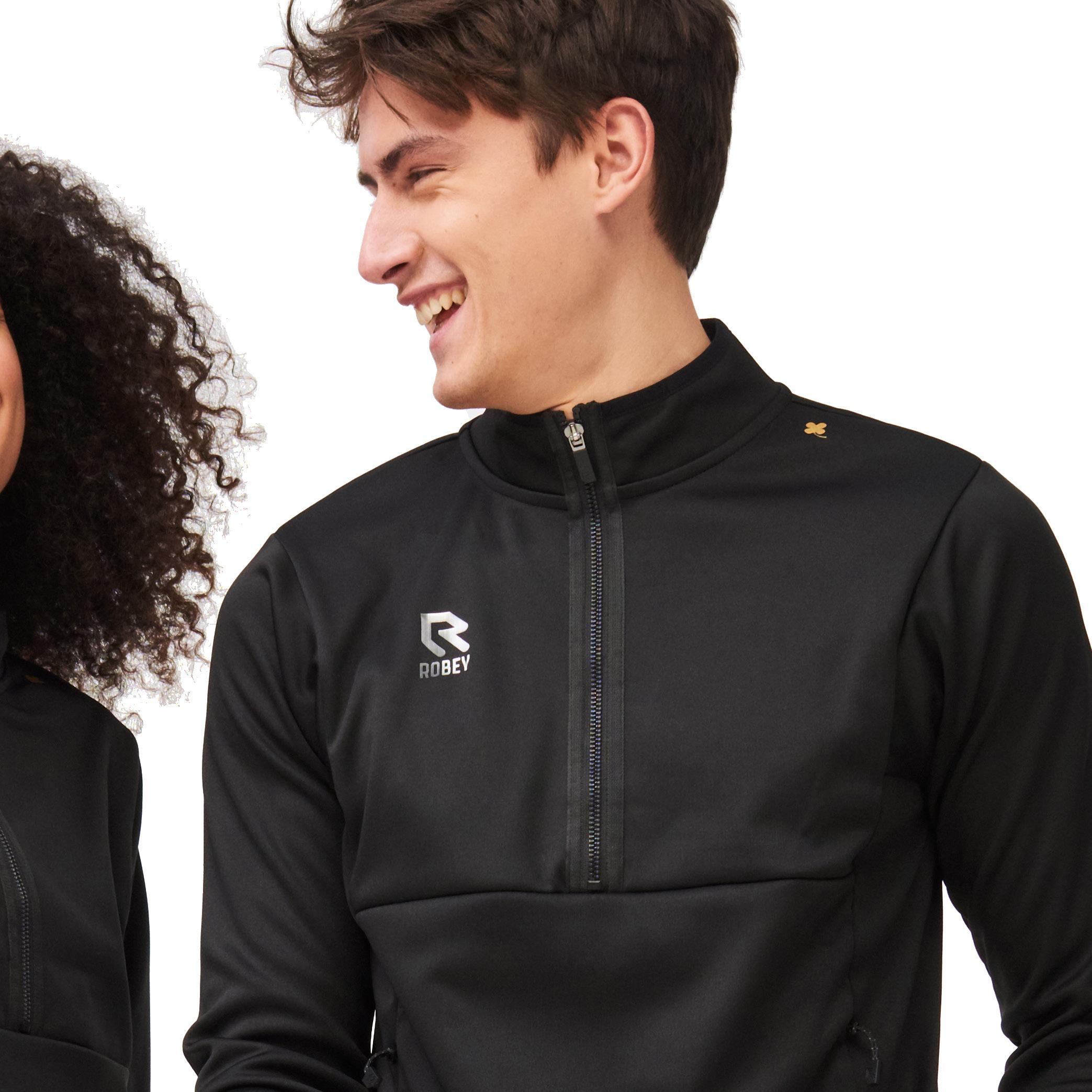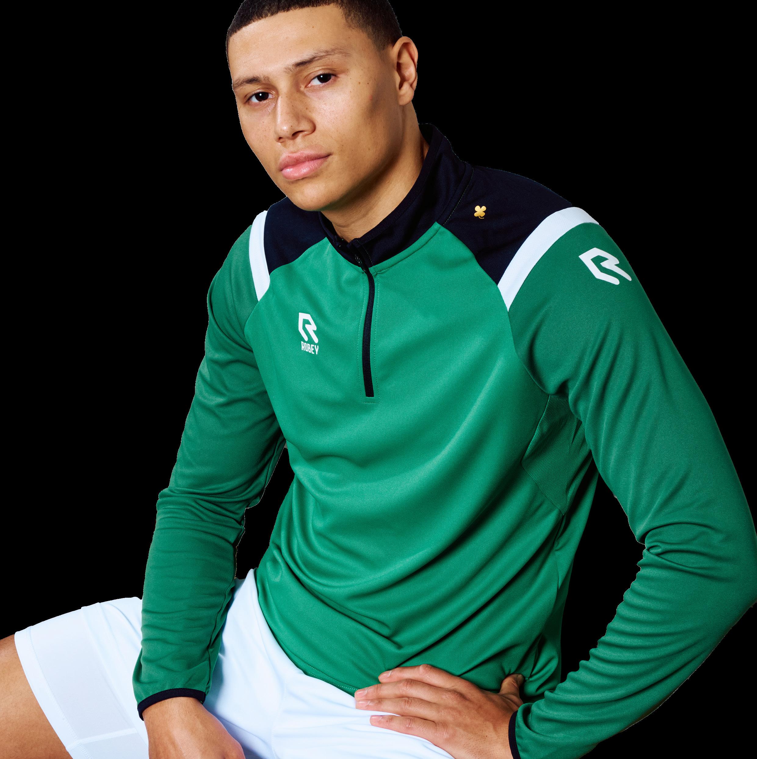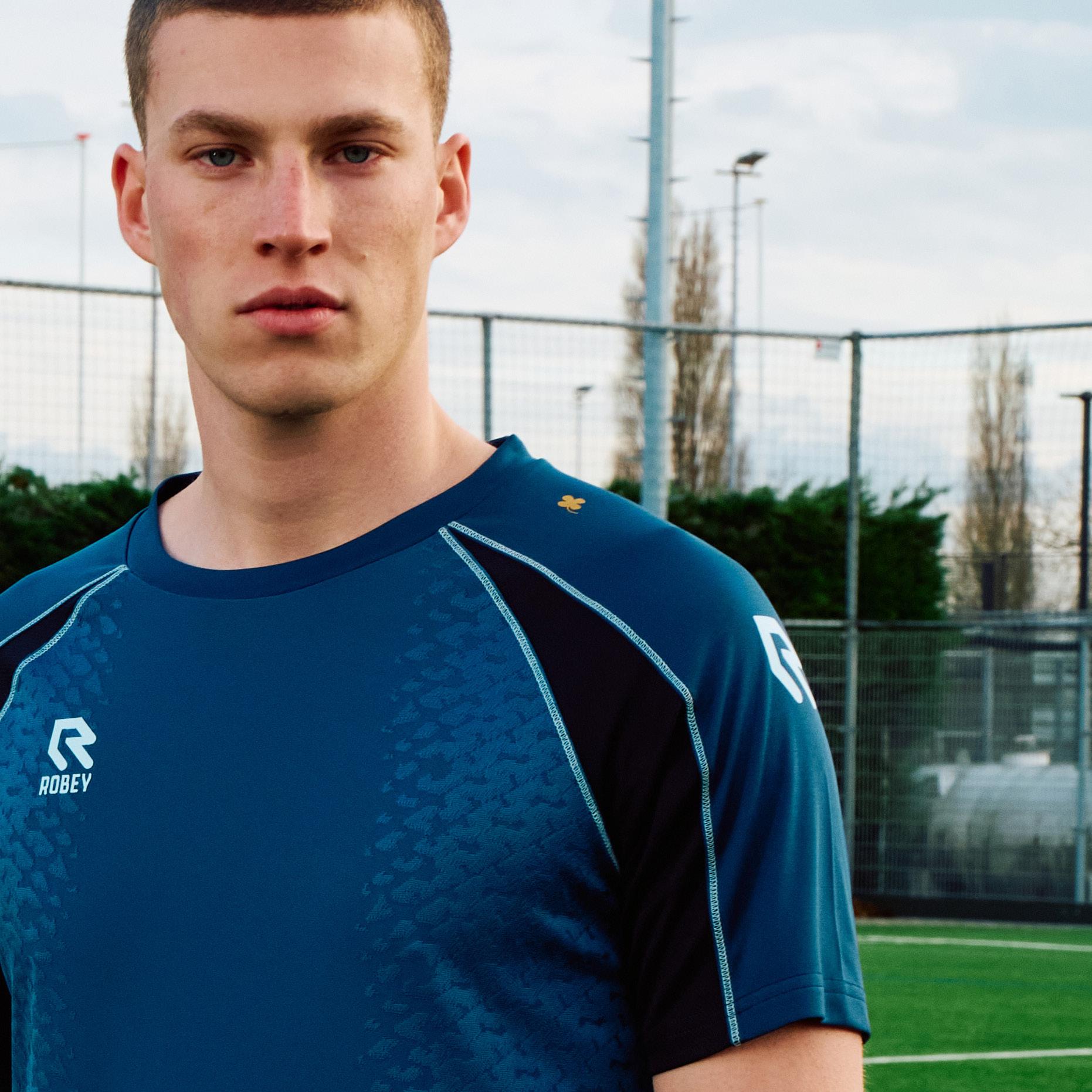 zweetafvoerende stoffen zorgen er bovendien voor dat je zelfs in de lastigste omstandigheden geweldig voelt. De herkenbare Robey R’etjes en gouden klaver maken van de Performance een echt Robey icoon.