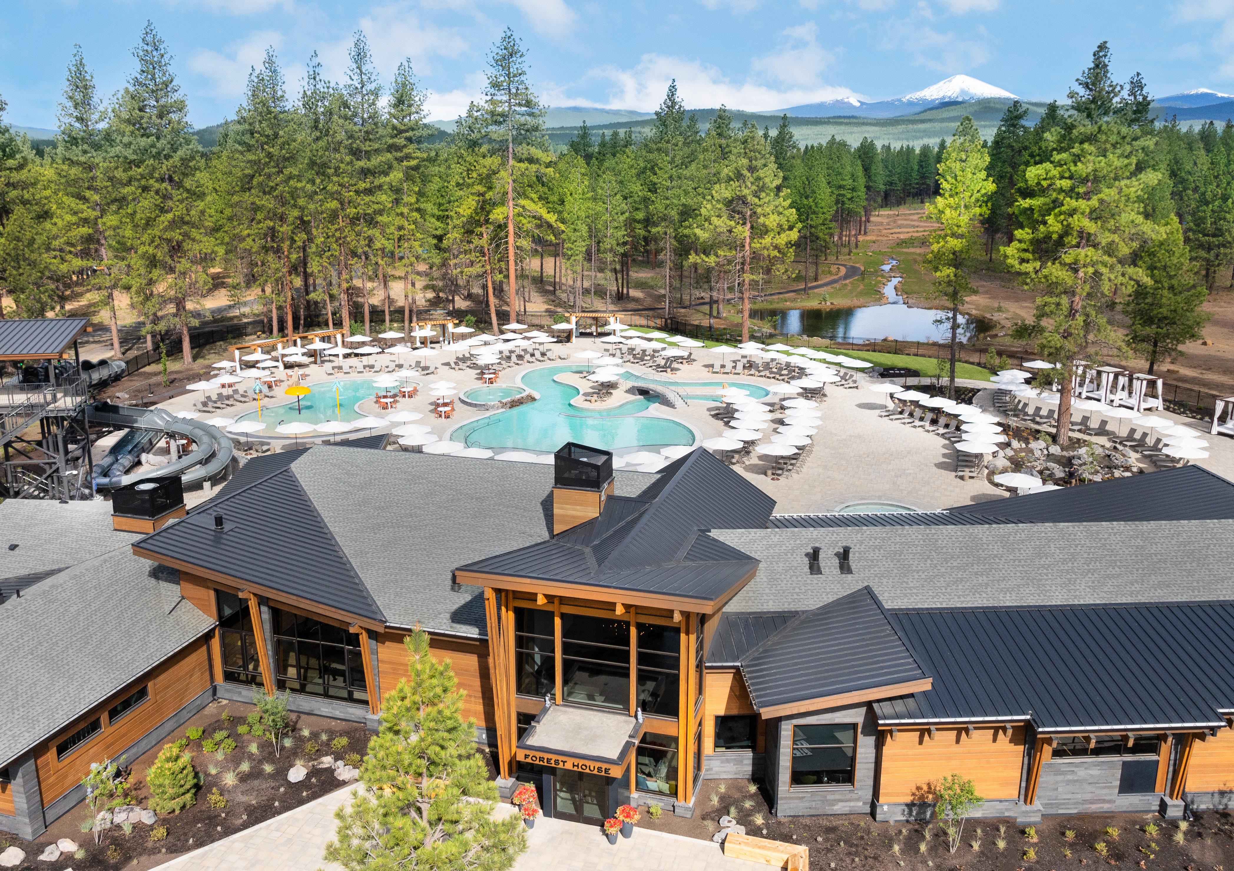 Enjoy a dynamic community centerpiece designed for gathering and recreation. Forest House is home to an impressive aquatics complex with multiple swimming pools, a double-racer water slide, a fitness center, a family room, Piney’s poolside cafe and bar, duckpin bowling and more.