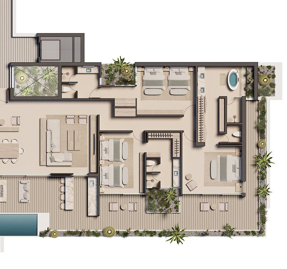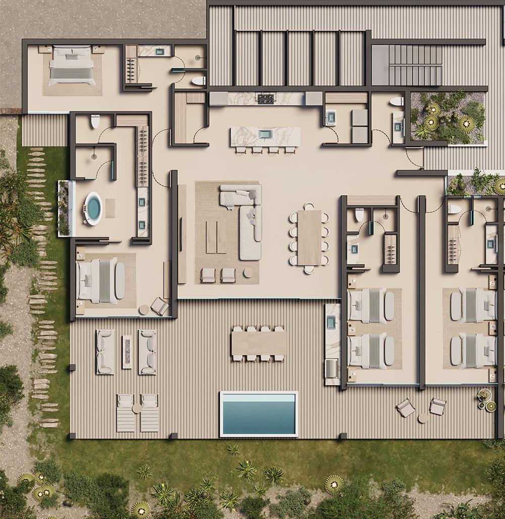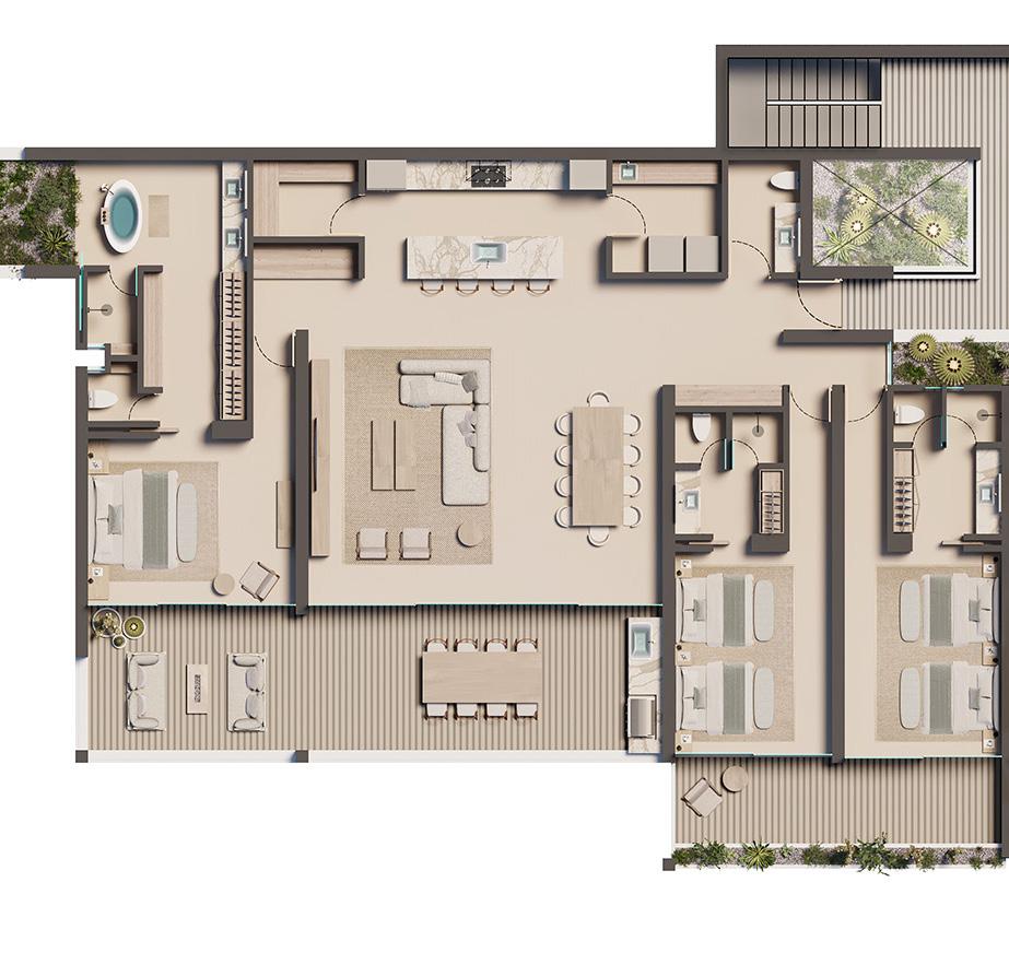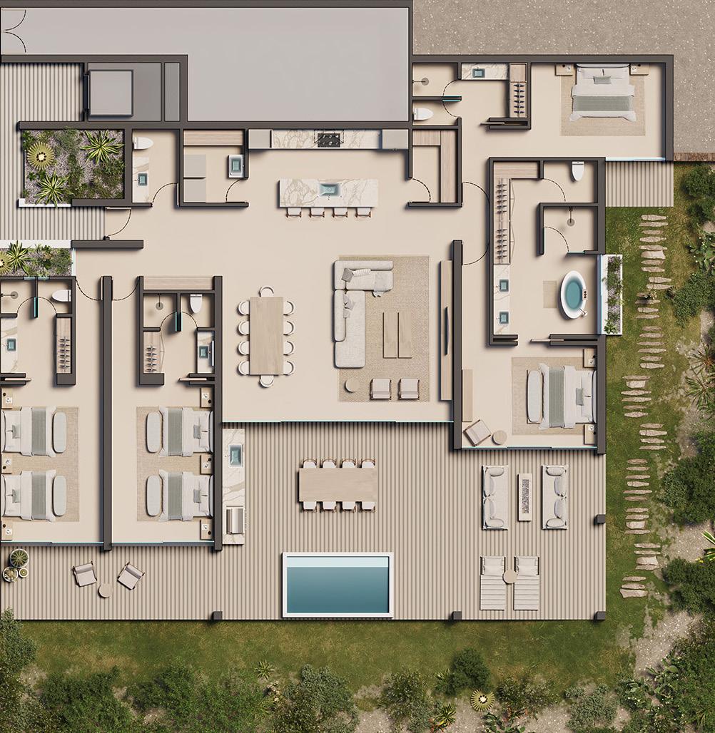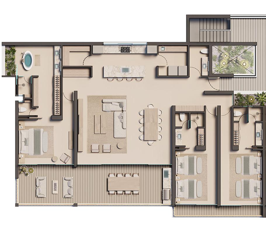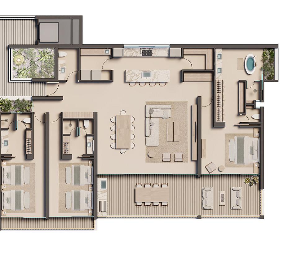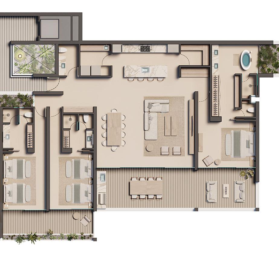 Owner suites feature grand spaces, while bedrooms include outdoor terraces, each thoughtfully laid out to offer outstanding views of the surrounding landscape for you and your guests.