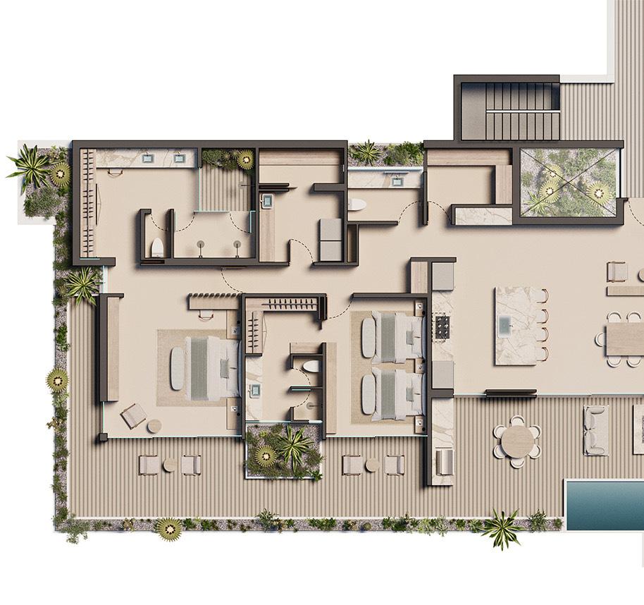 On top of it all, the limited collection of six penthouses offers another level of luxury with an incredible open floorplan covering the entire top floor of each building, with additional outdoor living terraces and private plunge pool to enjoy the cool mountain breeze and the most breathtaking views in all of Palmilla.