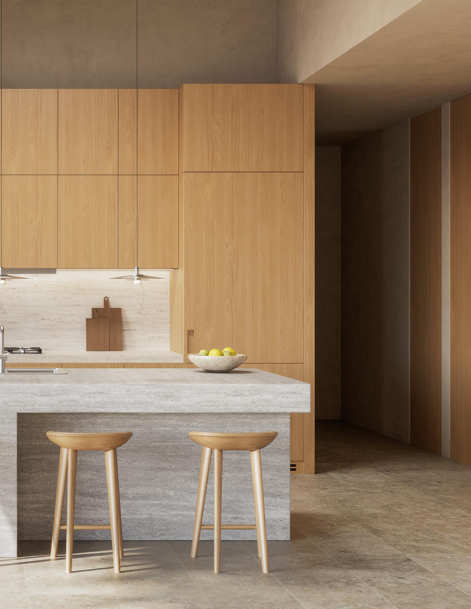 Contemporary, bright design with refined natural textures and finishes