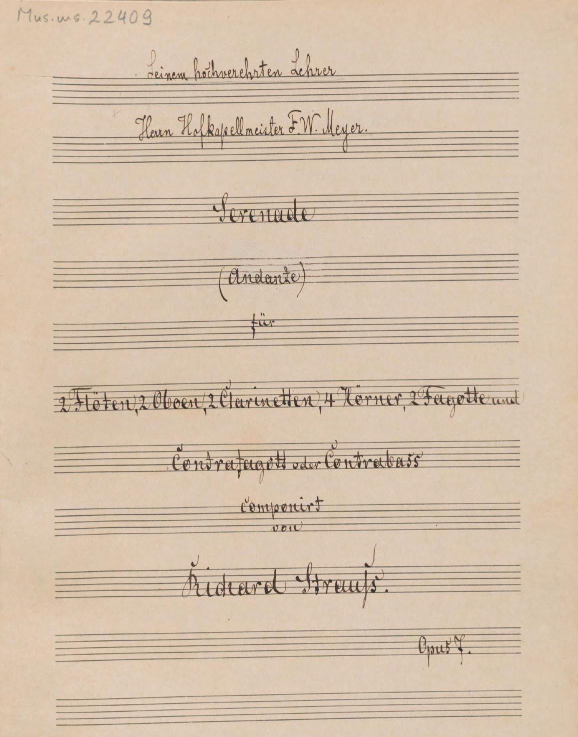 Richard Strauss (1881). Manuscrito autógrafo de Serenade para ensamble de vientos, op. 7. Tchaikovsky Research. Recuperado de: https://www.digitale-sammlungen.de/en/view/bsb00086257?page=4,5