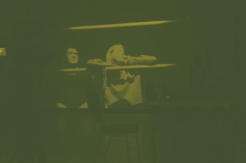 rutuliojamas pagal Rolando Schimmelpfennigo tekstinę dramaturgiją ir pjesės veikėjų linijas, o scenos aikštelėje matome gyvus aktorius, su kuriais žiūrovui nesiūloma tapatintis, nes jie nieko nevaidina, neiliustruoja, tik atlieka pagalbines funkcijas: įgarsina vaizdą, kelia triukšmą, gamina maistą, vaikšto po sceną, nusirenginėja, atlieka šokio judesius ir kitus beprasmius veiksmus. Tokia spektaklio komponavimo struktūra, viena vertus, įgalina žiūrovus keisti žiūrėjimo kryptis (nuo scenos prie ekrano ir atvirkščiai), kita vertus, panaikina dominuojantį pasakojimą ir leidžia išvengti autokratinio reprezentavimo.