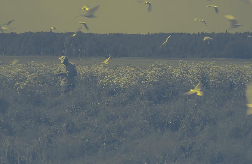 Nors ekranas žvilgsnį koncentruoja į išorinį stebėjimą, vaizdas šiuo atveju netampa tikrovę objektyvizuojančiu veiksniu, nes pats vyksmas iš scenos perkeliamas į realų kraštovaizdį –nykioje civilizacijos glūdumoje telkšančią pelkę. Režisierius aktorių kūnus tikrąja to žodžio prasme panardina peizaže: jie mirksta vandenyje, šąla lietuje, murkdosi klampiame pelkės purve. Taigi aktoriai čia tiesiogiai išgyvena patirties situacijas, o jų įkūnijami veikėjai aptinka save įstrigusius antropoceno viduje kaip neapibrėžtame „kažkur“. Pelkė čia tampa tuo hiperobjektu, kuris griauna iliuzinį reginį ir neleidžia objektyvizuoti vaizdo. Kamera šiuo atveju tik fiksuoja veiksmą, tad vizualumas nukreipiamas ne tiek estetizavimo, kiek patirties linkme. Galima sakyti, kad ekranas įtraukia žiūrovus į tikrovės ir patirties procesą.
