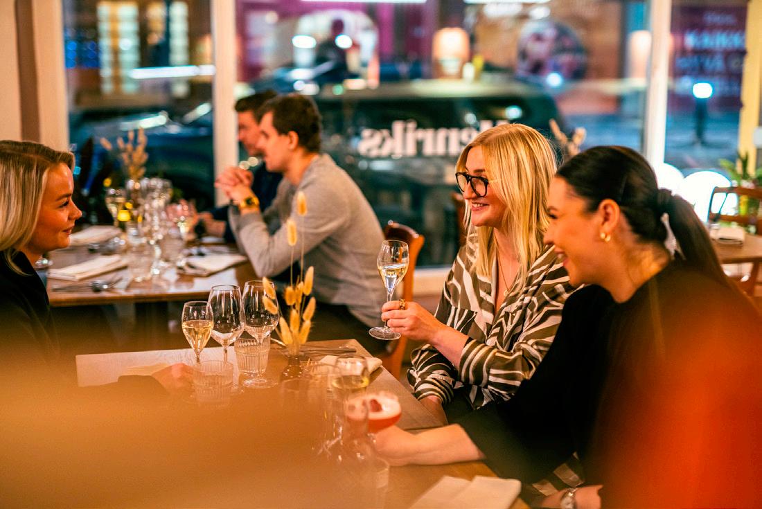 Ravintola on avoinna jopa keskiyöhön – tule nauttimaan elämyksellisistä etkoista tai pitkän kaavan illallisesta ja yhdistä unohtumaton makuelämys kulttuuri-iltaasi.