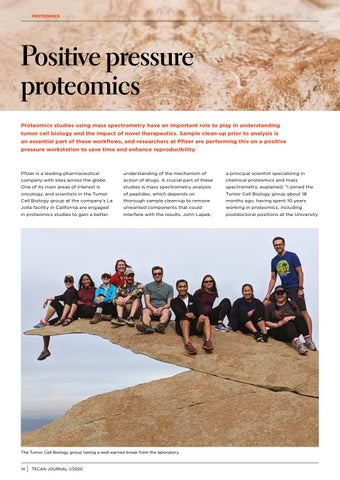 Positive pressure proteomics Proteomics studies using mass spectrometry have an important role to play in understanding tumor cell biology and the impact of novel therapeutics. Sample clean-up prior to analysis is an essential part of these workflows, and researchers at Pfizer are performing this on a positive pressure workstation to save time and enhance reproducibility.