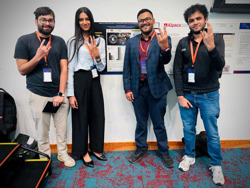ASU Next Lab Executive Director Dan Munnerley, along with Studio Associates Hithesh Rai Purushothama, Ananya Kodali, Hrushikesh Milind Pandit and Sahil Garg, showcased a poster at the inaugural LlamaCon on their efforts to fine-tune Llama models for offline use on low-powered devices bringing AI to remote areas without internet or power. At the convention, we were able to connect with other developers tackling realworld challenges in constrained environments and demonstrate what’s possible when we work with open-source models that can be distilled, optimized, and deployed locally at the right scale.