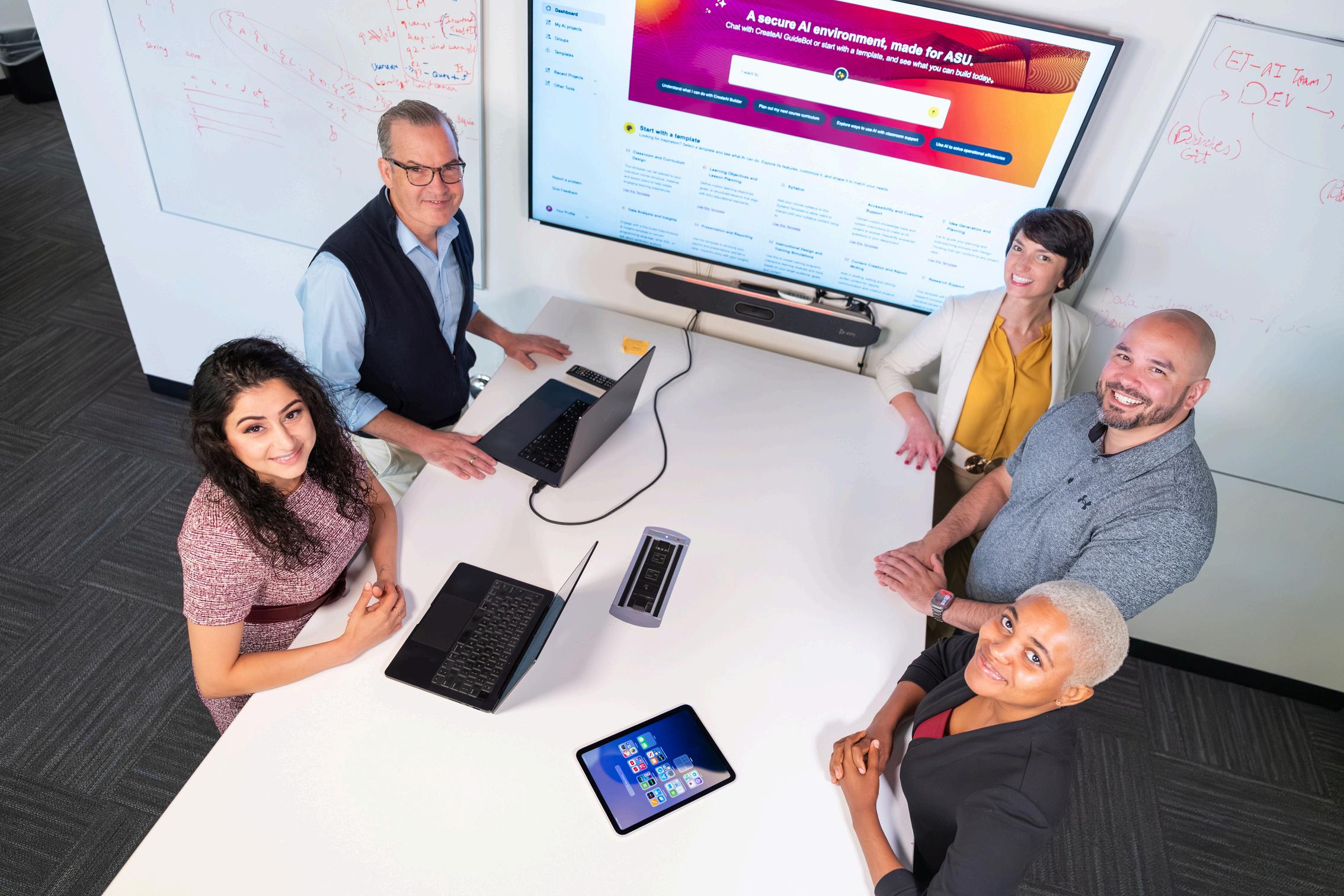 The AI Journey is made possible through the collaborative efforts of ASU’s Enterprise Technology Creative x Communications team and Media Relations and Strategic Communications, along with additional contributing units, ensuring a comprehensive and cohesive initiative.