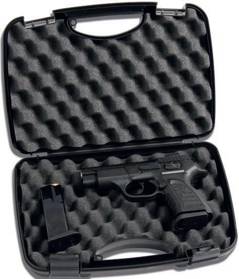 CARACTERÍSTICAS: Fabricada por inyección en polipropileno rígido en color negro. Interior para 200 tiros (8 cajas del 12). Cerradura con pestillos deslizantes. Medidas: 35x19,5x11cm.