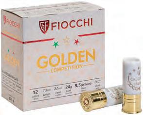 Golden es el tiro seleccionado por los campeones mundiales de tiro al vuelo, por su bajo retroceso y sus altas prestaciones, producto del uso de los mejores componentes, la mejor pólvora del mundo y un perdigón seleccionado con un 5% de antimonio tratado con un recubrimiento antifricción que le permite ser el cartucho con menor tiempo de permanencia en el cañón de la línea Fiocchi.