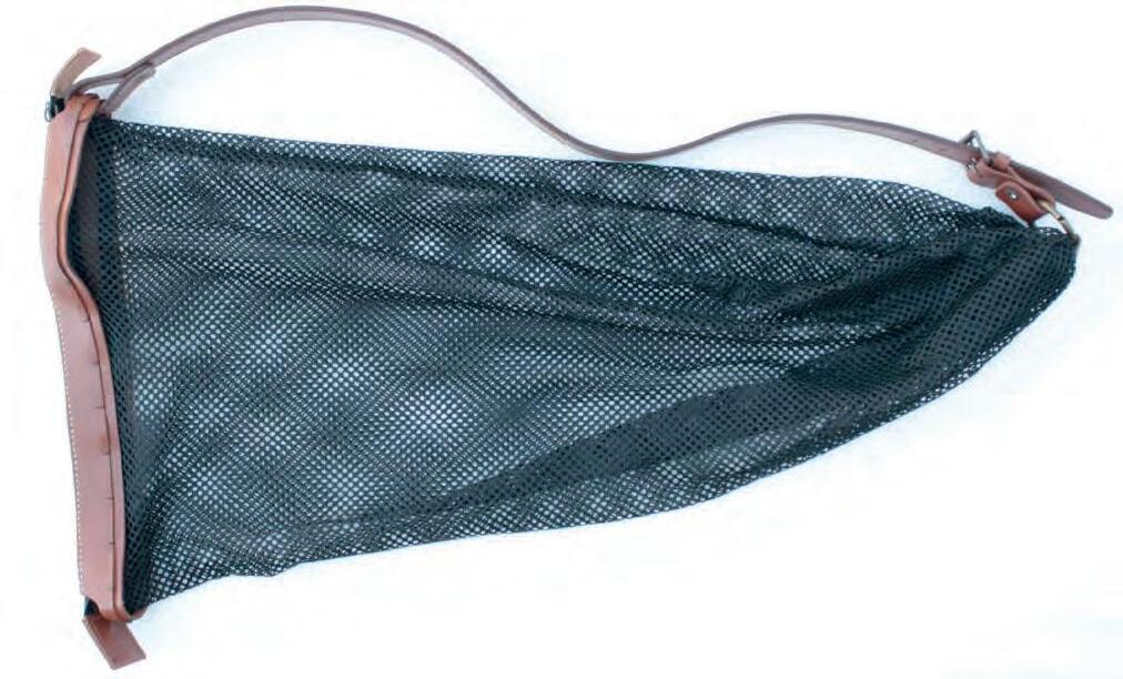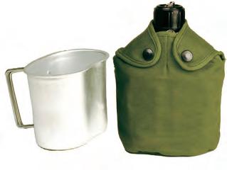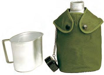 Fabricada en aluminio con forro de lona y pasador para el cinturón. Cadena de seguridad para tapa. Incluye tazón.