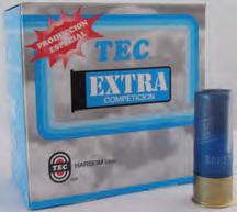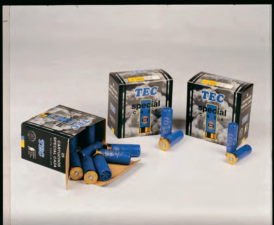 CALIBRE LARGO VAINA VACÍA MUNICIÓN VELOCIDAD V1 Nº PERDIGÓN EMPAQUE CÓDIGO TEC 12 SPORTING 70 mm28 g de carga410 m/s 4-5-6-7,5 10 cajas de 25 unidades 1112521205/6/7/8 12 SKEET 70 mm24 g de carga402 m/s 9,5 10 cajas de 25 unidades 1112521295 12 SPORTING 12 SKEET
