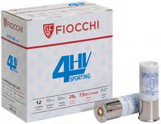 de la línea Sporting de Fiocchi de alta potencia que gracias a su perdigón con 5% de antimonio, ofrece una excelente performance a grandes distancias y con platillos muy duros.