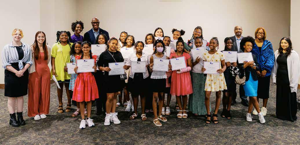 One cohort of students in ESD’s Girls in Engineering Academy with their certificates of completion of last year’s summer program. They are joined by teachers and ESD Executive Director Robert Magee and Program Director Dr. Gerald Thompkins, both standing in the back.