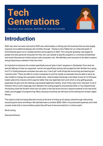 Its important to introduce the context specifically around “girls in tech” programs in Cambodia From what we learned talking to those we supported, women are specifically actively discouraged by their families from going into IT or Coding because computers are seen as a “man’s job” while things like accounting and teaching are “women’s jobs”.There are little to no tech companies to work for locally so examples that are able to serve as role models to change this perception hardly exist Unfortunately Cambodia is far better known for it’s Chinesefueled cybercrime industry which pays far better than any legitimate tech work which is why getting people, especially the girls onto the starting rung towards legitimate industry Even if they have to be “bad girls” to do it! However there is still a large gap even between the coding programs and practical skills vs “toy programming” introductory tools like Scratch which are not useful in the real world and don’t expose students to the real world reality and struggles of programming. Many, because of poverty are still stuck at the starting line of basic digital literacy