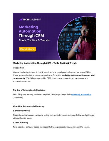 Manual marketing is dead. In 2025, speed, accuracy, and personalization rule — and CRM-driven automation is the engine. According to Forrester, marketing automation improves lead conversion by 77%. When powered by CRM, it also enhances customer experience and accelerates revenue.