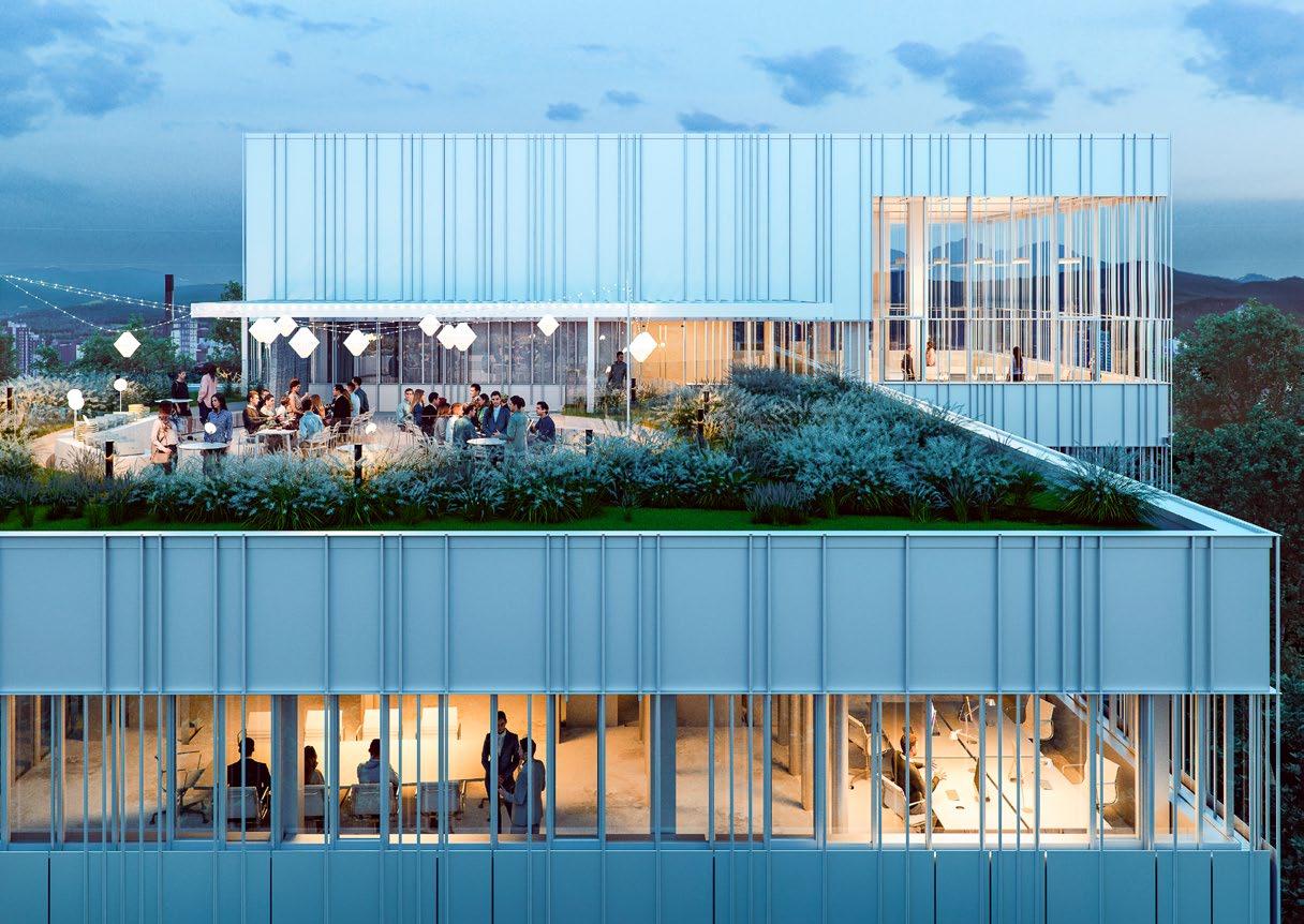 Der Großteil der Büroflächen im Techno Head ist bereits vermietet, zwei rund 300 Quadratmeter große Premium-Einheiten sind noch frei. Das zweigeschossige Office-Loft mit offener Galerie im Dachgeschoß ist architektonisch perfekt auf vielfältige und flexible Raumnutzungsmöglichkeiten ausgerichtet und besticht durch außergewöhnlich viel Licht, eine großartige Aussicht und modernes Design. Auch die zweite freie Büroeinheit bietet repräsentative Räumlichkeiten in Toplage. Beide Einheiten verbinden moderne Architektur mit innovativem Raumkonzept, sind hochwertig mit Materialien wie Holz und Glas ausgestattet und bieten einen kurzen Weg zur Dachterrasse mit Dachgarten.