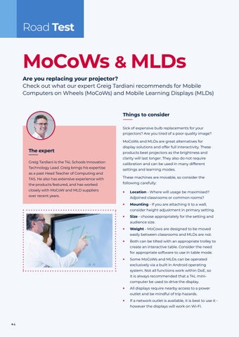 MoCoWs & MLDs Are you replacing your projector? Check out what our expert Greig Tardiani recommends for Mobile Computers on Wheels (MoCoWs) and Mobile Learning Displays (MLDs)