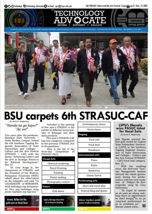 @techadspc Technology Advocate techad_spc@lspu.edu.ph 6th STRASUC Culture and the Arts Festival |Special Issue 2| Nov. 15, 2022