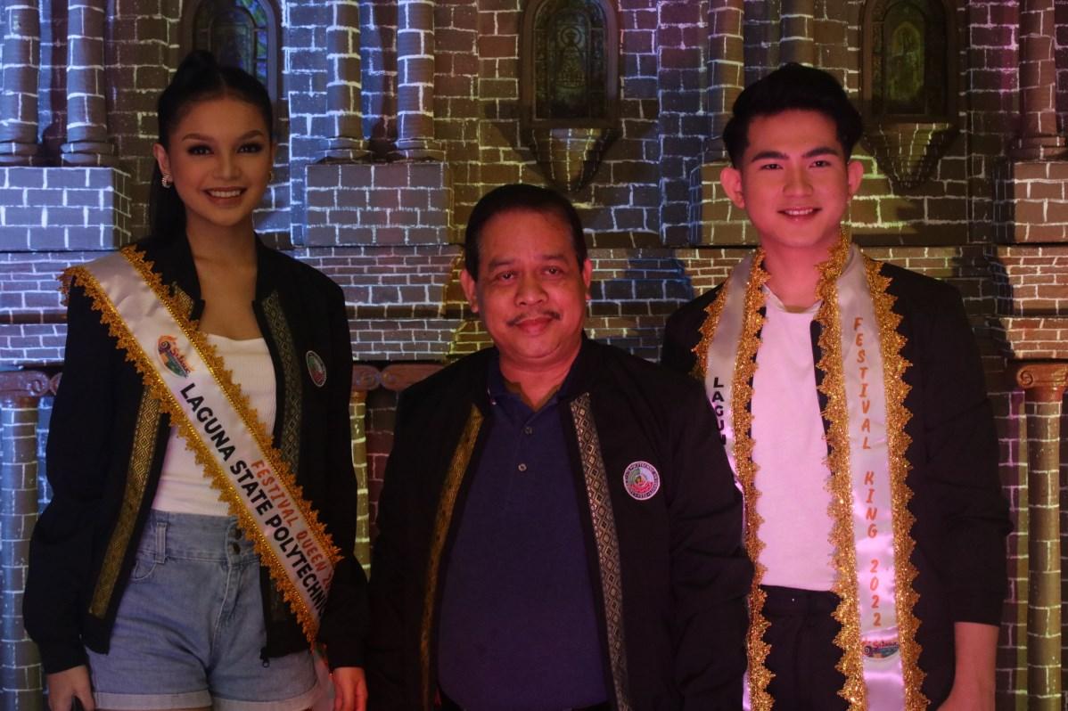 SUPPORT. LSPU President, Dr. Mario R. Briones shows his support to the University’s representative at 2022 STRASUC King and Queen.