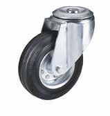 Sollevatori idraulici a carrello, linea BASIC: leva di comando; piattello in ghisa; comando discesa a pedale; ruote posteriori pivottanti.