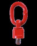 Golfare girevole con anello, orientabile sotto carico, certificato CE. In acciaio legato G80; verniciato rosso; coefficiente di sicurezza 4 in tutte le direzioni di carico; orientabile a 360°; idoneo al sollevamento in sicurezza secondo direttiva macchine 2006/42/EC.