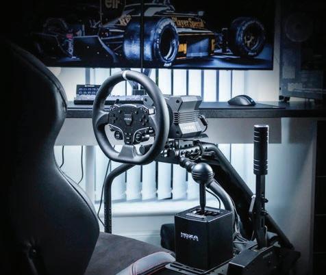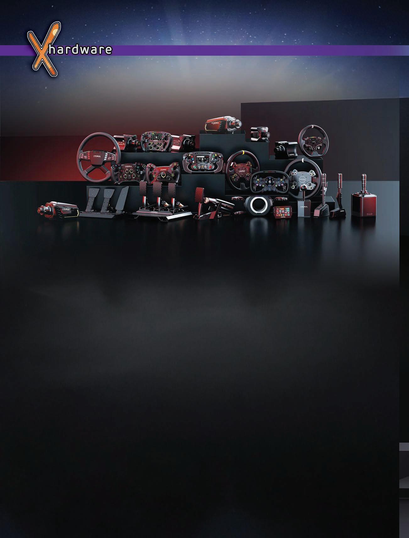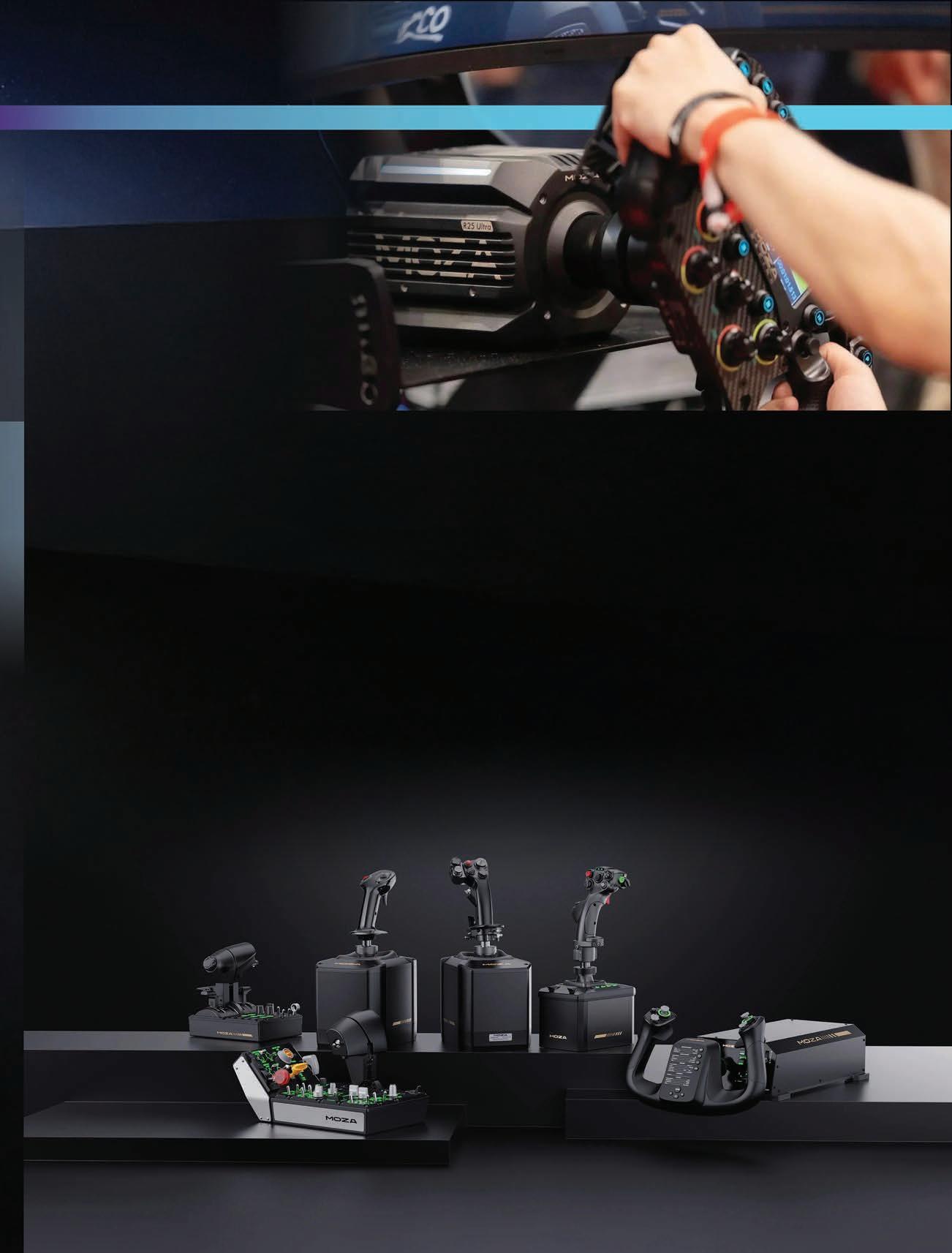οικοσύστημα με μοτέρ/βάσεις, τιμόνια (GT, formula, κλασικά), πενταλιέρες, shifter, handbrake, dashboard και mounting λύσεις, όλα με plug‑and‑play