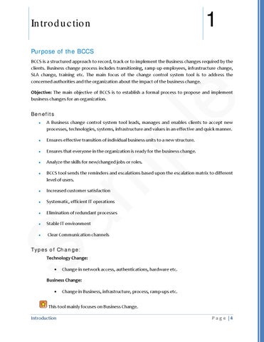 BCCS is a structured approach to record, track or to implement the Business changes required by the clients. Business change process includes transitioning, ramp up employees, infrastructure change, SLA change, training etc. The main focus of the change control system tool is to address the concerned authorities and the organization about the impact of the business change.
