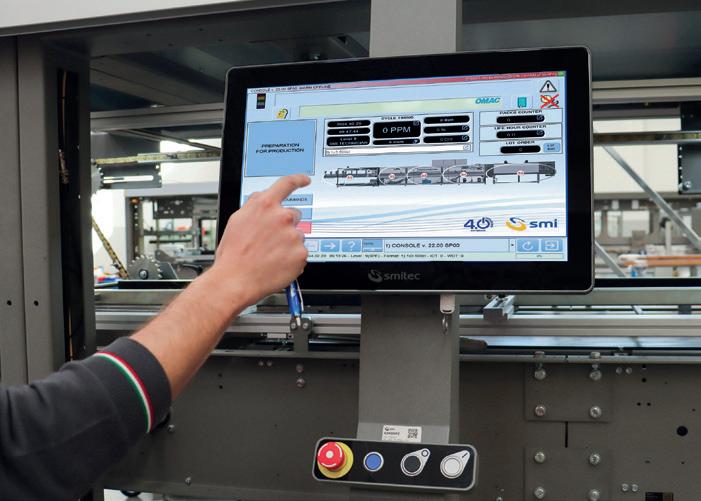 SMI manufactures fully automated and ergonomic systems for primary, secondary and tertiary packaging, user-friendly and able to interconnect in digital networks. This makes it possible to increase the flexibility and efficiency of production, as well as an accurate control of the consumption of the machines, fully meeting the current criteria of Industry 4.0 and the new ones of Industry 5.0. Thanks to the digital intelligence with which they are equipped, the latest generation of SMI machines can benefit from the SMYIOT platform, which has the task of collecting all the operating and life cycle data of the same, allowing them to be verified, processed and enhanced. The HMI of SMI plants is another element of Industry 5.0 that aims to simplify human-machine collaboration. From the control panel, the operator can select various “dashboards” that facilitate the management and maintenance of the machine, allow the selection of processing parameters and provide the user with guided and interactive procedures.