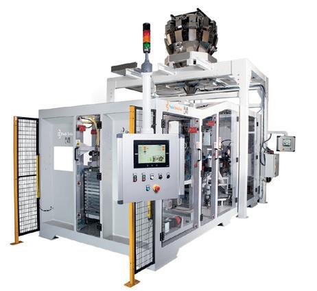 tazze per prodotti granulari, caricamenti a coclea per le polveri, nastri sincronizzati per prodotti a conteggio, stampatori e molto altro. Una menzione particolare riguarda il sistema di iniezione di azoto, la quale permette di prolungare la “shelf life” del prodotto; il dispositivo agisce sulla composizione di aria all’interno della busta, riducendo la percentuale di ossigeno che troviamo in essa e sostituendola in azoto. La vasta gamma di combinazioni e personalizzazioni che può offrire permette di soddisfare le richieste più varie non solo riguardo la tipologia di prodotto, ma anche la forma e la dimensione della busta che si desidera ottenere.
