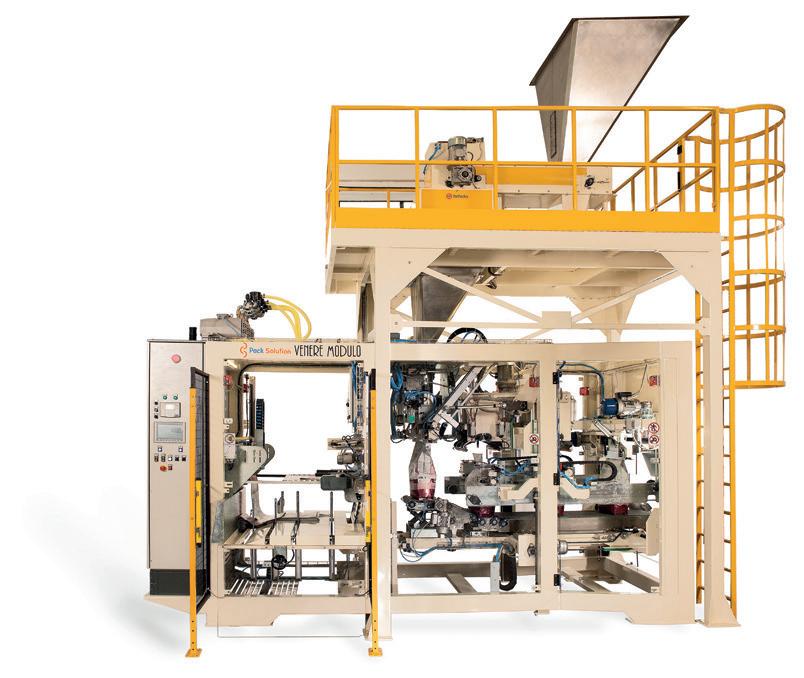 Packaging lines with electronic weighers (linear and multihead weighers), volumetric dosers (volumetric cups or auger filler), with the possibility of combining two different dosers on the same machine, are available for packing into pillow pack, flat bottomed bags, gusseted bags, bags with handle, clip, doystyle bag and bags with vacuum.