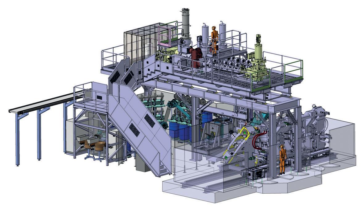 • An electric Allrounder 630 A, also in the new slimline design, which produces a high-quality plastic glass from copolyesters. A new linear Multilift Select 16 robotic system performs the handling tasks.