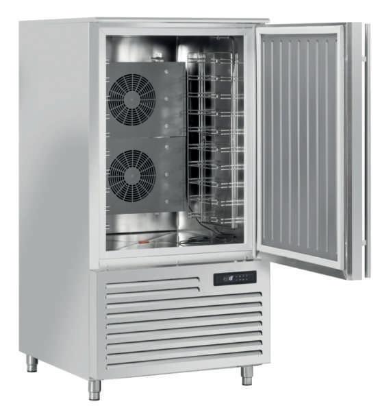 Riduce i tempi di attesa in cucina diminuendo la temperatura a cuore da 90° a 3°C in soli 90 min e la temperatura di un alimento appena sfornato da 90° a -18°C in 4h