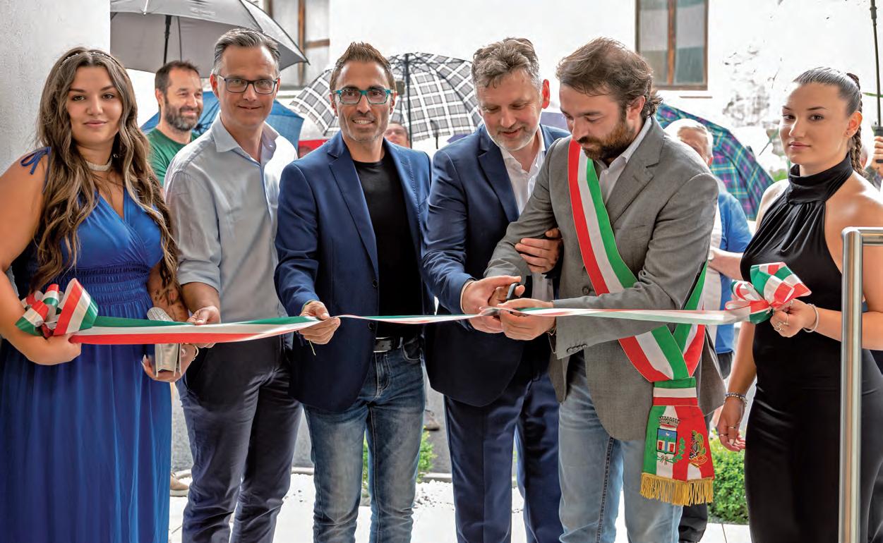 In basso, a sinistra, il giorno dell’inaugurazione, con la presenza di alcuni rappresentanti della regione Friuli Venezia Giulia accanto a Oscar De Franceschi e al sindaco di Paluzza durante il taglio del nastro.