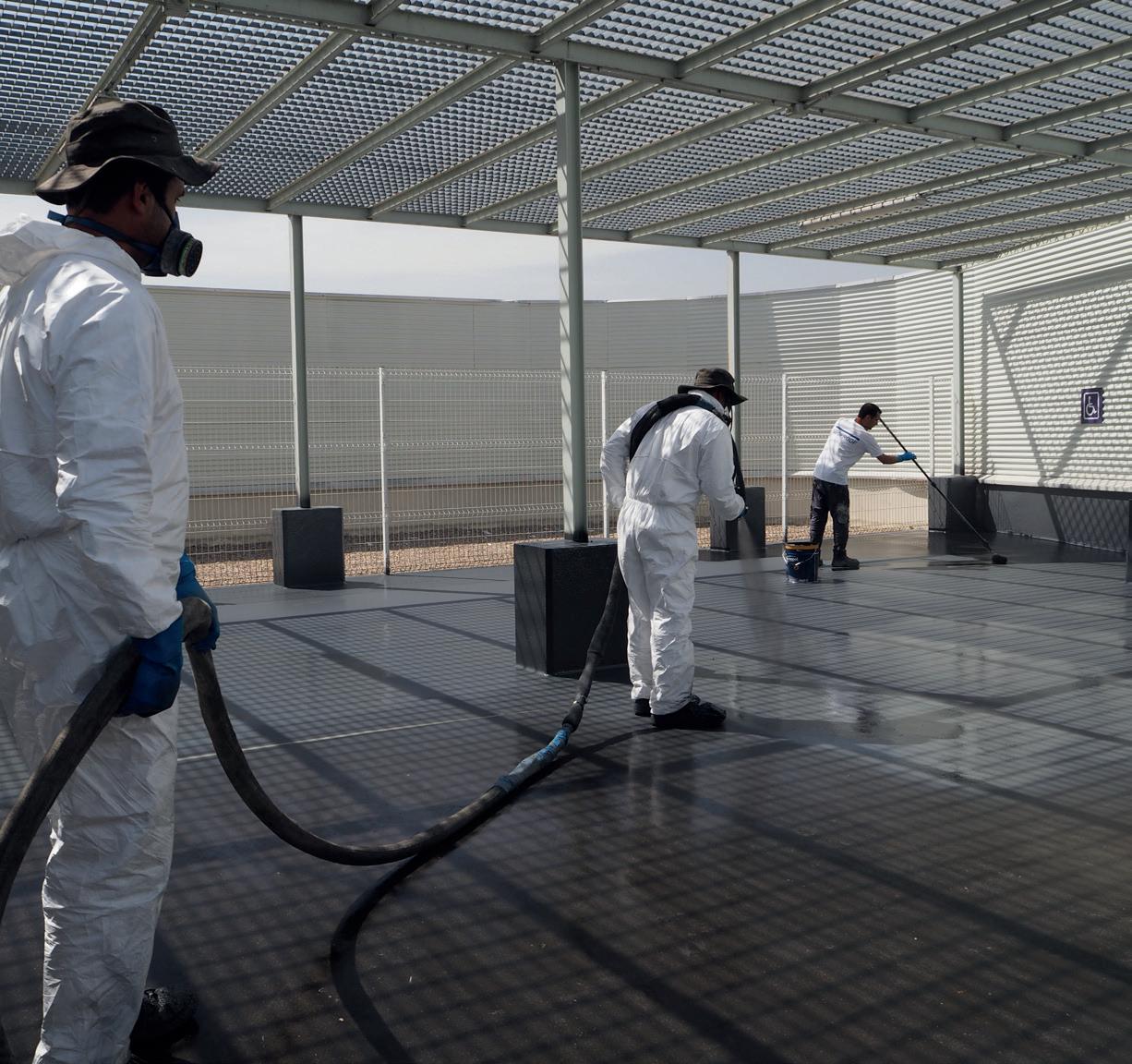 After the abrasion process, and before the waterproofing system application, it is necessary to apply corrosion inhibitor products.