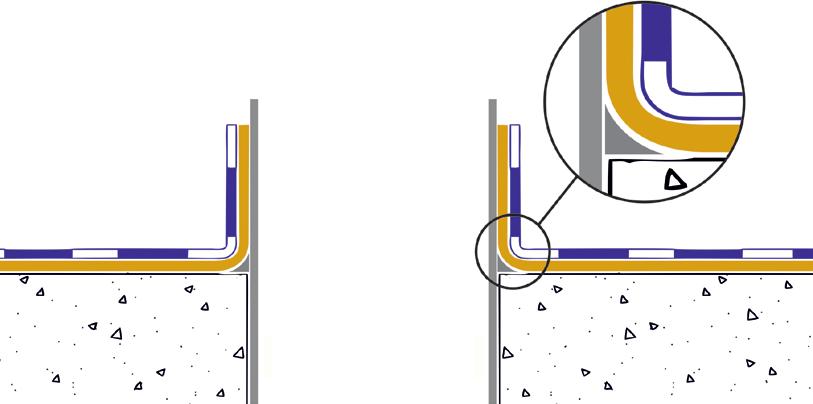 • Hydrostatic water: The existence of rising damp, (water coming up through the element), is not compatible with continuous membrane WATERPROOFING SYSTEM and, therefore, this situation will have to be resolved via onsite application of water-vapor permeable hydraulic materials or the installation of floating floors, etc.