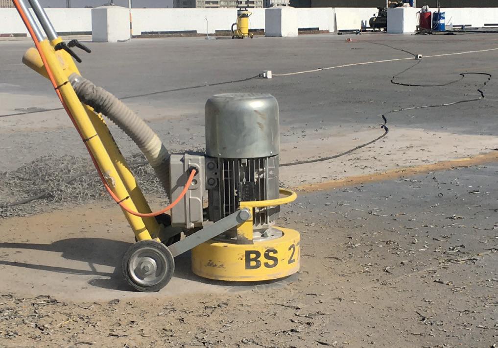 Arenado: Generalmente emplea un tipo de arena abrasiva disparada por aire comprimido a través de una boquilla. El chorro de arena se recomienda para uso horizontal, vertical y aéreo. Este método se recomienda para remover la superficie del hormigón, selladores existentes y recubrimientos duros. La creación de polvo puede estar prohibida por la normativa medioambiental. Existen mecanismos de vacío para eliminar el polvo del aire. La limpieza con chorro de arena húmeda cumple con las regulaciones ambientales en la mayoría de países. Elimine el material de disparo, el polvo y los residuos de lodo de acuerdo con las normas ambientales. Este método de preparación de superficies, aunque altamente eficaz, ha perdido utilidad debido a su restricción medioambiental.