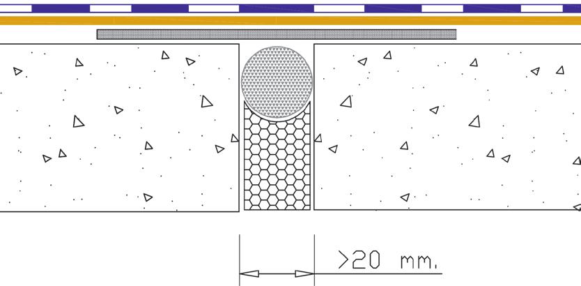 En el caso de juntas de dilatación, la tensión a absorber es mayor y, por lo tanto, este elemento debe ser tratado como un elemento estructural y utilizando una banda elástica específica.. Deben aplicarse e instalarse en las áreas sujetas a movimientos estructurales según la ficha técnica.