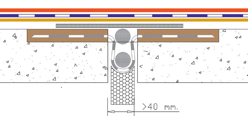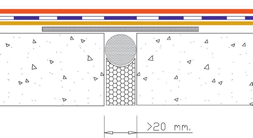 En el caso de juntas de dilatación, la tensión a absorber es mayor y, por lo tanto, este elemento debe ser tratado como un elemento estructural y utilizando una banda elástica específica. Deben aplicarse e instalarse en las áreas sujetas a movimientos estructurales según las fichas técnicas.