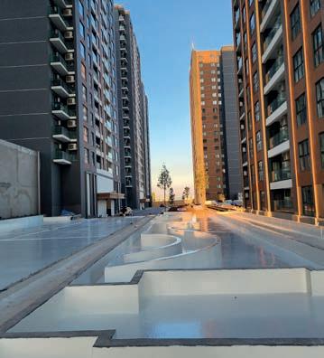 Un proyecto de esta magnitud requiere de profesionales y productos para que el sistema de impermeabilización instalado esté a la altura de sus exigencias. Por esta razón, los prescriptores han seleccionado a nuestro colaborador e instalador homologado MASTERBUILD y el sistema de poliurea pura Tecnocoat P-2049 para asegurar la estanqueidad de los más de 150.000m2 de áreas clave como azoteas, terrazas, cubiertas de aparcamiento, jardines, piscinas y zonas deportivas. Este sistema se caracteriza por su alta versatilidad y resistencia, lo que permite su aplicación en diversas tipologías constructivas con resultados sobresalientes.