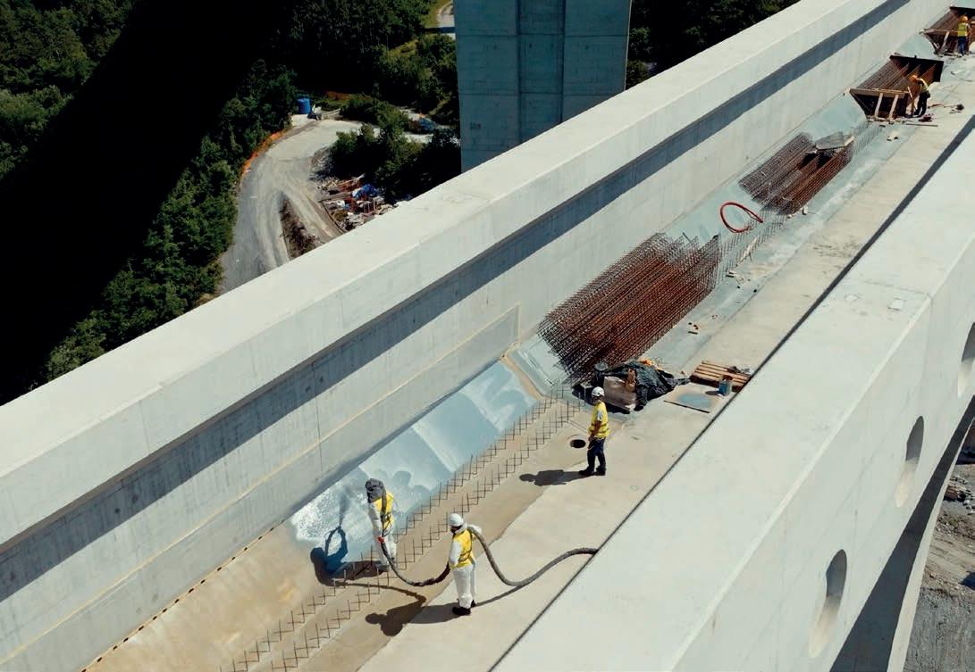 Para su impermeabilización y protección del hormigón, se ha seleccionado el sistema de poliurea Tecnocoat P-2049, certificado por EOTA para su aplicación en tableros de puente. Nuestro colaborador esloveno, ARHILAB, se encarga del desarrollo e instalación del proyecto de impermeabilización de los 4145 m² de este viaducto. La aplicación, que se está llevando a cabo actualmente, se está realizado de la según el proceso de la páginas siguientes.