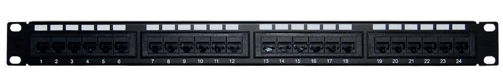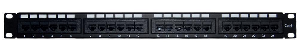 Patch panel CAT6 24 puertos, 1UR precargado para montaje en rack o gabinetes (ver pág. 338)