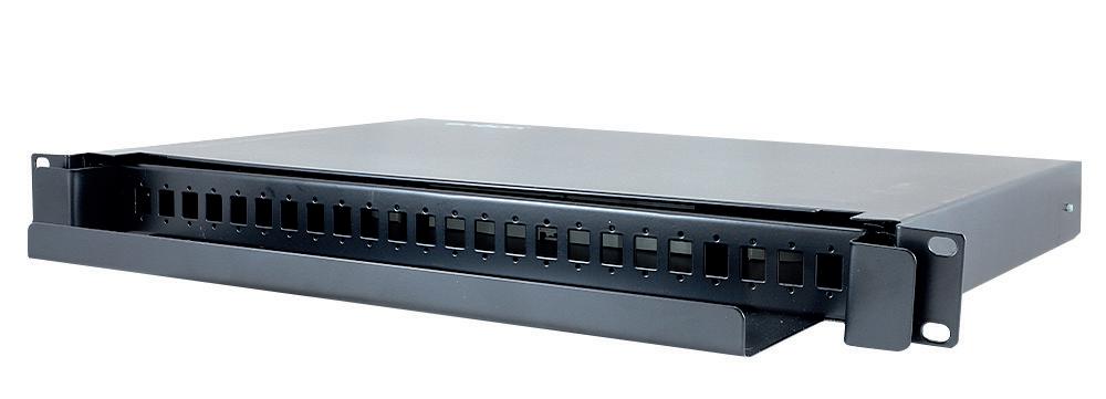 Charola para rack frontal a dos puntos sólidos de 1UR (ver pág.327)