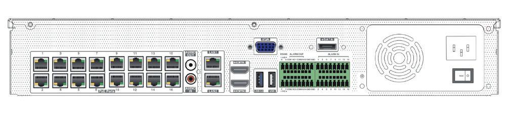 NVR 16 canales PoE 8 MP soporta cámaras ONVIF cuenta con analíticos inteligentes por IPC o NVR