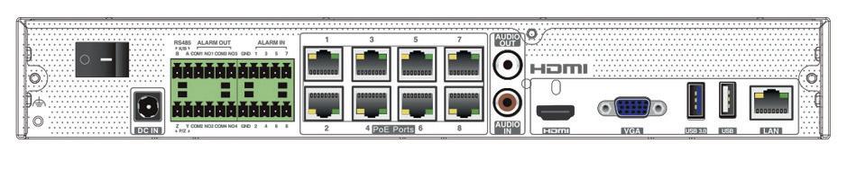 NVR 8 canales PoE 12 MP soporta cámaras ONVIF cuenta con analíticos inteligentes por IPC o NVR