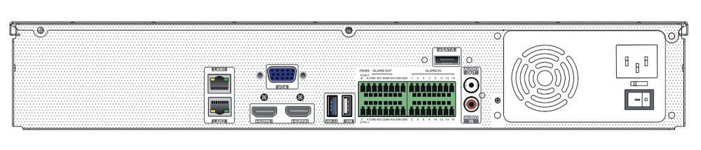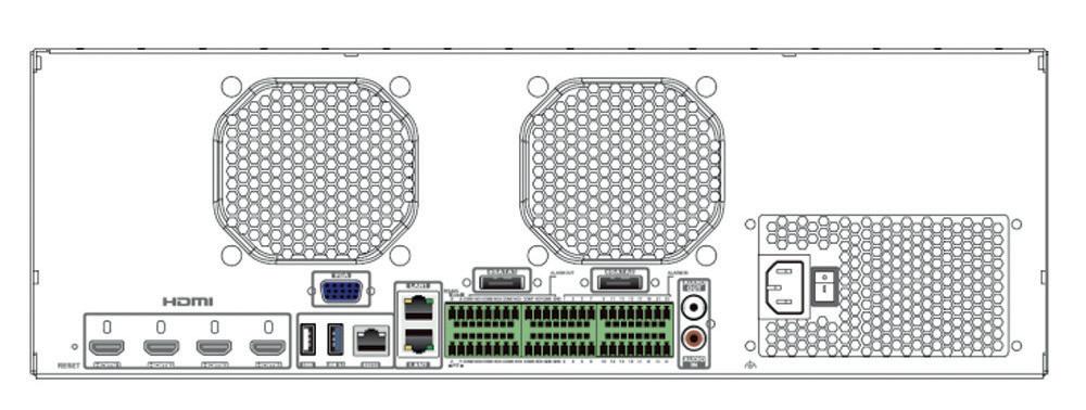 NVR 128 canales No PoE 16 MP soporta cámaras ONVIF cuenta con analíticos inteligentes por IPC o NVR, soporta arreglo RAID