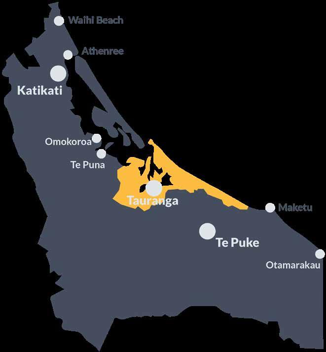 Our region stretches from Waihi Beach in the north, through to Otamarakau in the east, covering the same regions administered by Tauranga City Council and Western Bay of Plenty District Council.