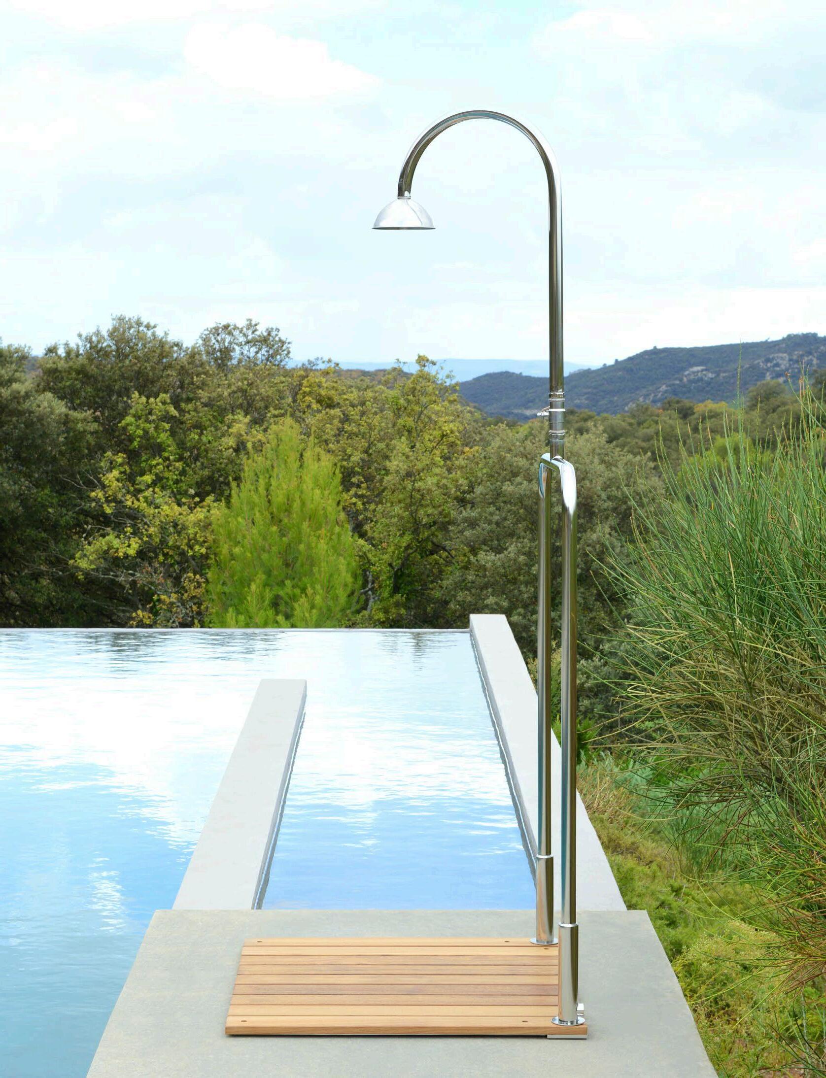 Toutes nos douches et bornes offrent un design sobre qui leur permet de s’intégrer naturellement dans leur environnement. Le concept est simple : une colonne dans laquelle circule l’eau provenant directement d’un branchement à un tuyau d’arrosage ou encore depuis une installation de plomberie fixe. En option, nos douches peuvent être équipées d’un caillebotis ainsi que d’un régulateur d’eau chaude. Quant à la douche Eclipse solaire, elle est munie d’un réservoir intégré à sa structure dans lequel l’eau est chauffée par rayonnement solaire. Nous proposons également une gamme de pommes de douche, de différentes tailles, rondes ou carrées.