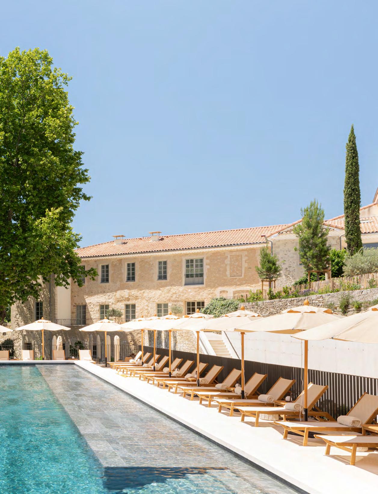 grège et aussi, le vert en écho aux oliviers des jardins. Les matières choisies pour l’ameublement s’accordent à la douceur ambiante avec du bois de chêne, du lin, du grès, de la terre cuite et de l’osier travaillés par des artisans d’art locaux. Une sérénité qui se retrouve au gré du restaurant gastronomique, Le Feuillée, du bistrot Pamparigouste et du bar L’Alambic, trois lieux dédiés aux saveurs provençales.
